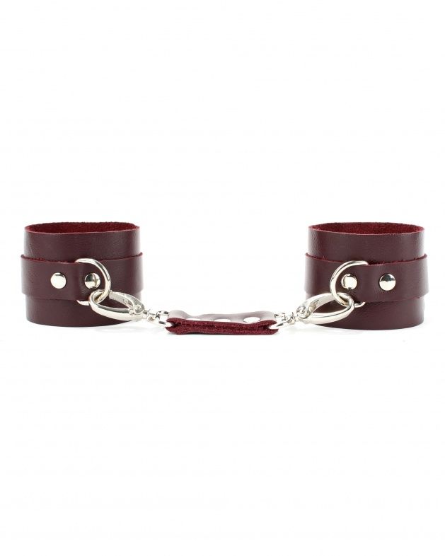 Оковы выполнены из натуральной кожи. Металлическая пряжка крепко удерживает в подчинении, кожаное соединение на карабинах фиксирует наручники вместе, ремни позволяю выбрать нужный размер. Стильный аксессуар поможет воплотить эротические фантазии в реальность.
