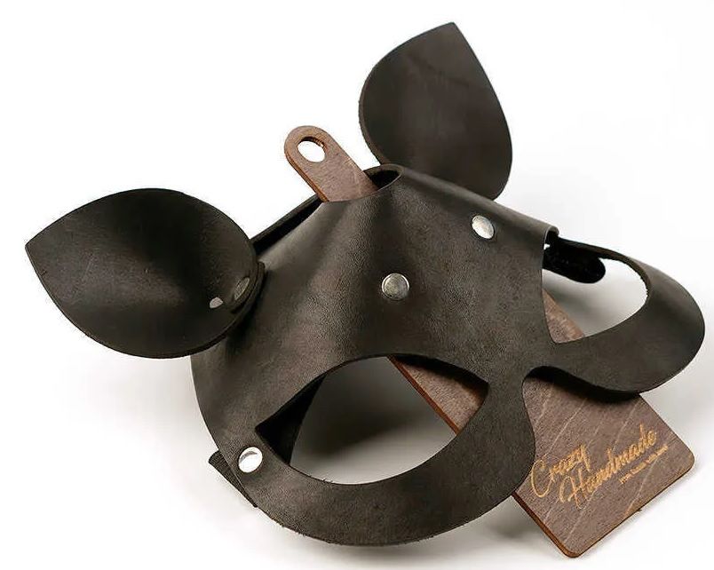 Кожаная маска Кошка с маленькими ушками снабжена широкой резинкой.