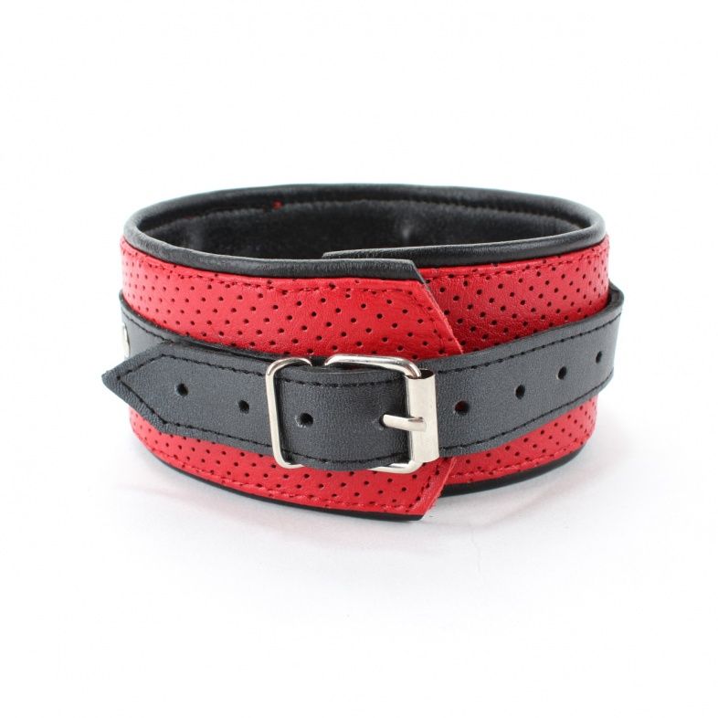 Великолепный бдсм-набор из ошейника и наручников, изготовленных из натуральной кожи. Размер ошейника, браслетов, ленты регулируются при помощи застежек. Длина ошейника - 43 см., ширина - 6 см. Длина оков - 25 см., ширина - 6 см.