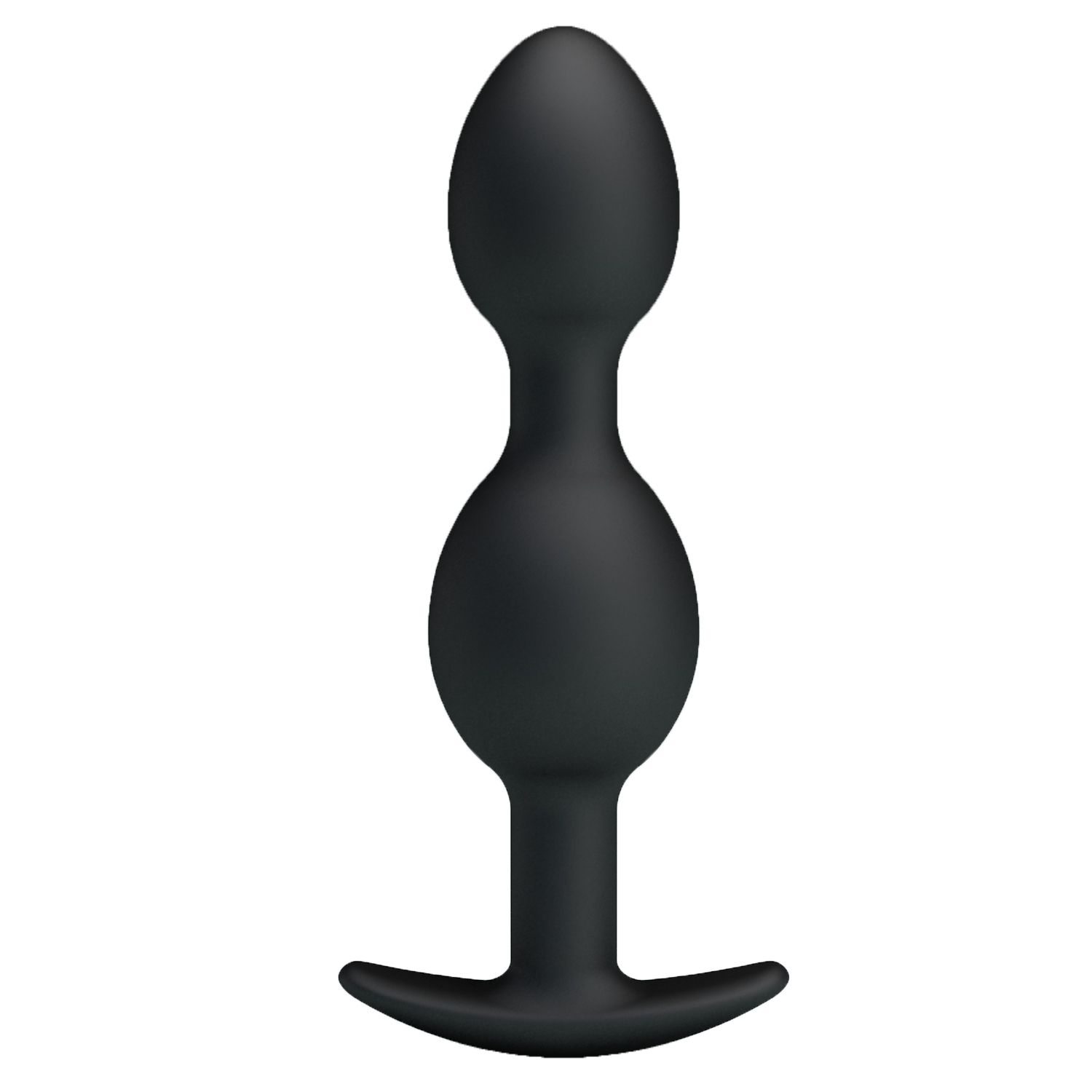 Чёрные анальные шарики из силикона. Удобны для ношения. Диаметр меньшего шарика - 2,3 см.