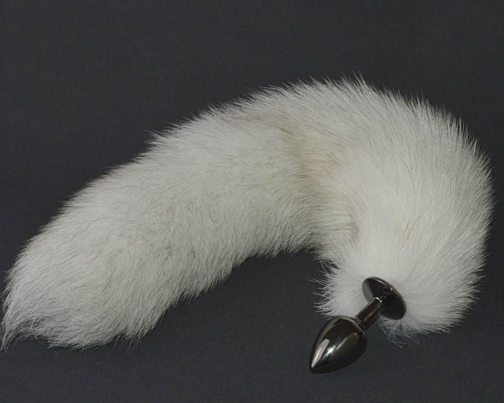 Анальная металлическая пробка с натуральным хвостиком. Длина хвоста - 30-35 см.