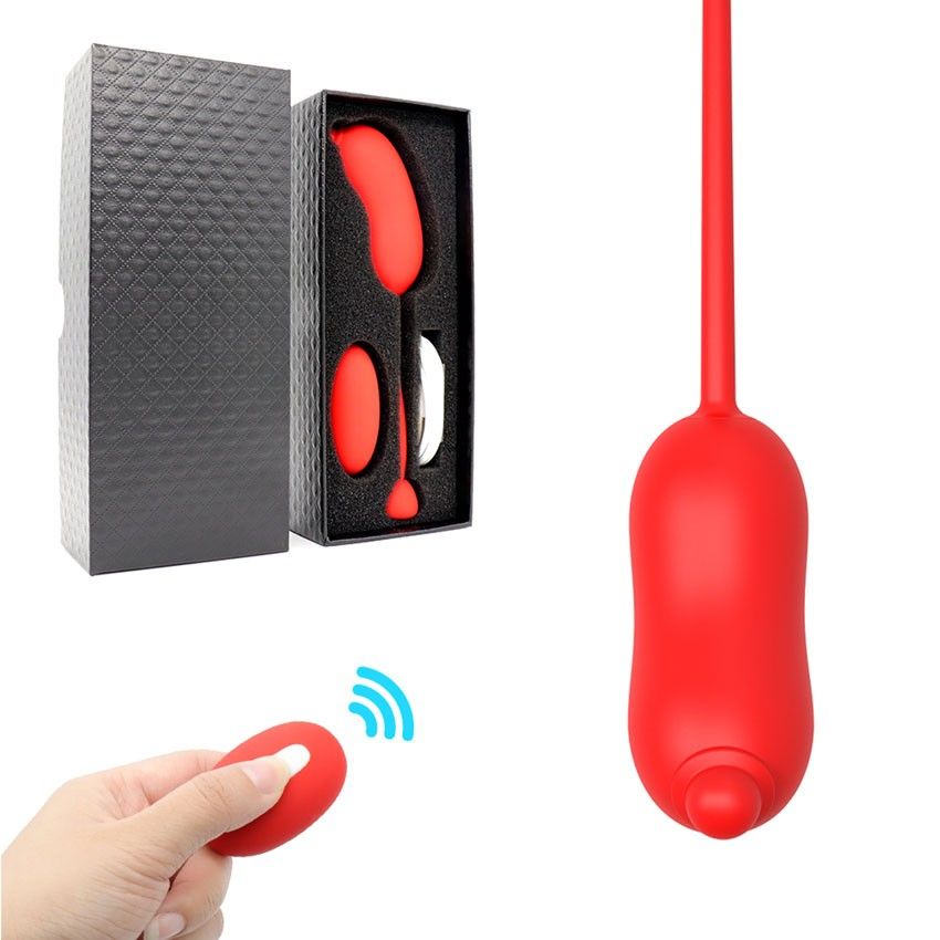 Красное виброяйцо с пультом ДУ. 10 режимов вибрации. Рабочая длина - 7,2 см.